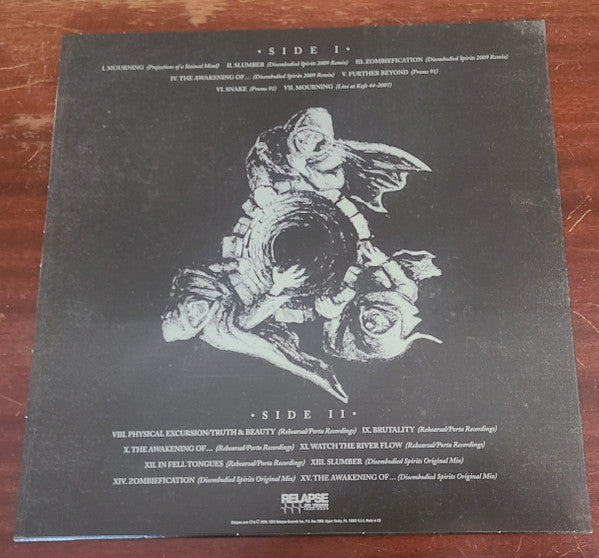 Tracklist: AI. Mourning (Projections Of A Stained Mind), AII. Slumber (Disembodied Spirits 2009 Remix), AIII. Zombiefication (Disembodied Spirits 2009 Remix), AIV. The Awakening Of... (Disembodied Spirits 2009 Remix), AV. Further Beyond (Promo 91), AVI. Snake (Promo 91), AVII. Mourning (Live At Kafe 44-2007), BVIII. Physical Excursion / Truth & Beauty (Rehearsal / Porta Recordings), BIX. Brutality (Rehearsal / Porta Recordings), BX. The Awakening Of... (Rehearsal / Porta Recordings), BXI. Watch The River Flow (Rehearsal / Porta Recordings), BXII. In Fell Tongues (Rehearsal / Porta Recordings), BXIII. Slumber (Disembodied Spirits Original Mix), BXIV. Zombiefication (Disembodied Spirits Original Mix), BXV. The Awakening Of... (Disembodied Spirits Original Mix)