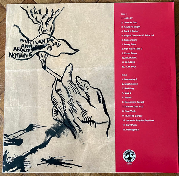 Tracklist: A1. L-Mix 87, A2. Dear Be Goo, A3. Koula Hi-Bright, A4. Back It Butter, A5. Vegital Disco No.10 Take 1-6, A6. Spocoreism, A7. Funky DNA, A8. V.D. No.10 Take 2, A9. Zoom Trags, A10. NAxKIxRA, A11. Dub DNA, A12. H.M. DNA, B1. Monarchy 6, B2. Machination, B3. Red Dog, B4. OAC 2, B5. Plynth, B6. Screaming Target, B7. Dear Be Goo Pt. 3, B8. New Yook, B9. I Kill The Barber, B10. Jurrasic Psycho Boy Park, B11. Surf Punk, B12. Damaged 3