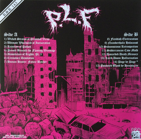 Tracklist: A1. Wicked Strains Of Primeval Virus, A2. Ultimate Whirlwind Of Incineration, A3. Rejection Of Pathos, A4. Pinned Beneath The Flaming Wreckage, A5. Dissolution Of Rights, Pt.5, A6. Crematory Desolation, A7. Human Hunter: Future Butcher, B8. Fiendish Elecrocution, B9. Neanderthalic Holocaust, B10. Subconscious Retrospection, B11. Subterranean Cave Mold, B12. Discarded Death Memory, B13. Lurid Doom Hallucination, B14. Page By Page , B15. Poisoned Blood By Hemotoxin