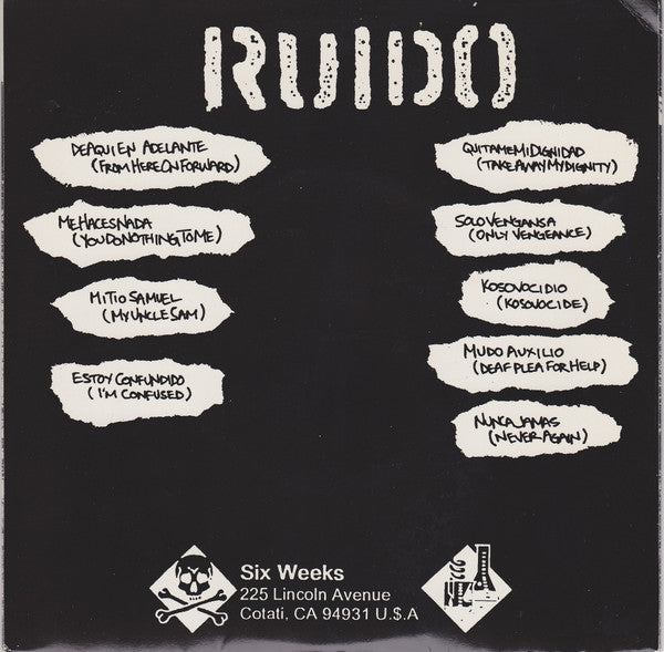 Tracklist: A1. De Aqui En Adelante (From Here On Forward), A2. Me Haces Nada (You Do Nothing To Me), A3. Mi Tio Samuel (My Uncle Sam), A4. Estoy Confundido (I'm Confused), B1. Quitame Mi Dignidad (Take Away My Dignity), B2. Solo Venganza (Only Vengeance), B3. Kosovocidio (Kosovocide), B4. Mudo Auxilio (Deaf Plea For Help), B5. Nunca Jamas (Never Again)
