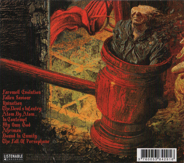 Tracklist: 1. Farewell Evolution, 2. Fallen Saviour, 3. Ruination, 4. The Devil's Infantry, 5. Atom By Atom, 6. In Contempt, 7. My Own God, 8. Ahriman, 9. Bound In Enmity, 10. The Fall Of Persephone