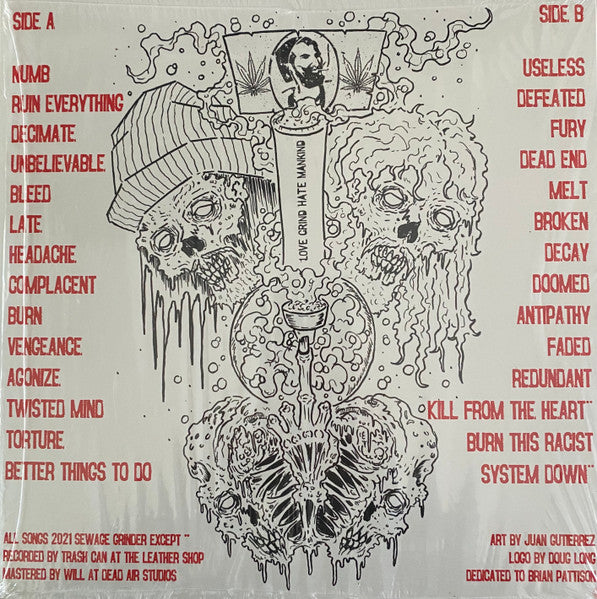Tracklist: A1. Numb, A2. Ruin Everything, A3. Decimate, A4. Unbelievable, A5. Bleed, A6. Late, A7. Headache, A8. Complacent, A9. Burn, A10. Vengeance, A11. Agonize, A12. Twisted Mind, A13. Torture, A14. Better Things To Do, B1. Useless, B2. Defeated, B3. Fury, B4. Dead End, B5. Melt, B6. Broken, B7. Decay, B8. Doomed, B9. Antipathy, B10. Faded, B11. Redundant, B12. Kill From The Heart, B13. Burn This Racist System Down