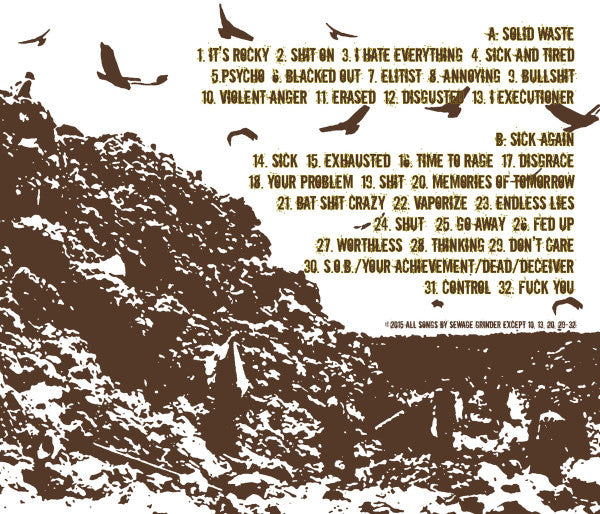 Tracklist: 1. It's Rocky, 2. Shit On, 3. I Hate Everything, 4. Sick And Tired, 5. Psycho, 6. Blacked Out, 7. Elitist, 8. Annoying, 9. Bullshit, 10. Violent Anger, 11. Erased, 12. Disgusted, 13. I Executioner, 14. Sick, 15. Exhausted, 16. Time To Rage, 17. Disgrace, 18. Your Problem, 19. Shit, 20. Memories Of Tomorrow, 21. Bat Shit Crazy, 22. Vaporize, 23. Endless Lies, 24. Shut, 25. Go Away, 26. Fed Up, 27. Worthless, 28. Thinking, 29. Don't Care, 30. SOB/Your Achievement/Dead/Deceiver, 31. Control, 32. Fuck You, 33. Outro