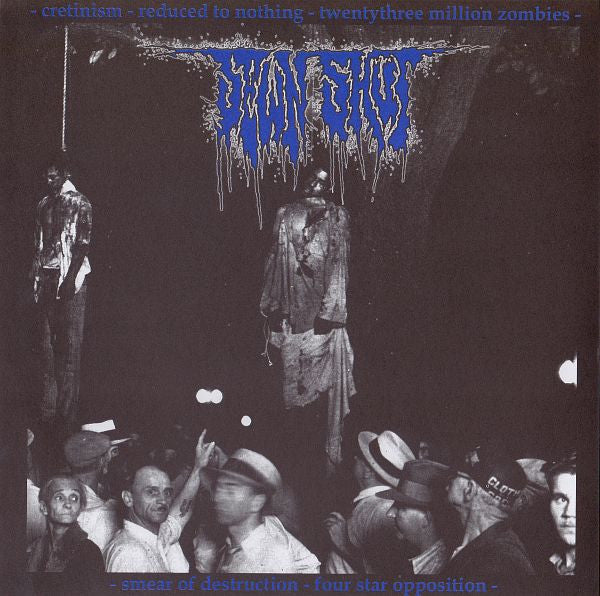 Tracklist: A1. Cretinism, A2. Reduced To Nothing, A3. Twenty-Three Million Zombies, A4. Smear Of Destruction, A5. Four Star Opposition, B1. Intro, B2. The Asian Penis-elevator, B3. Combustible Mummy, B4. Satanist, B5. Deadly Jewellery, B6. Outro