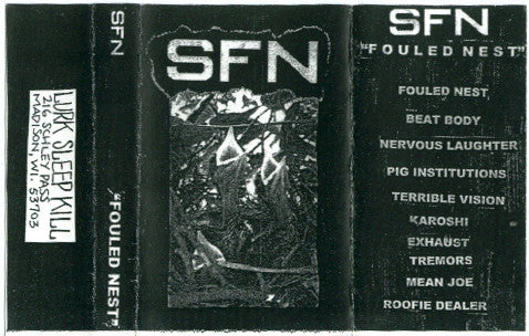 Tracklist: A1. Fouled Nest, A2. Beat Body, A3. Nervous Laughter, A4. Pig Institutions, A5. Terrible Vision, A6. Karoshi, B1. Exhaust, B2. Tremors, B3. Mean Joe, B4. Roofie Dealer, B5. Untitled