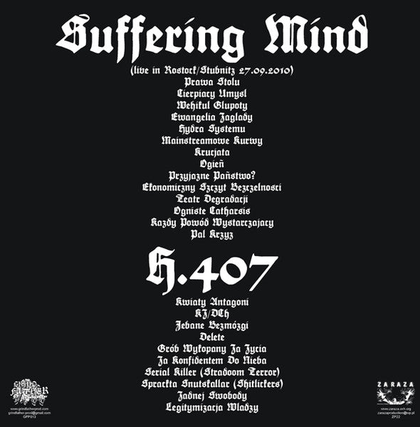 Tracklist: . Live In Rostock/Stubnitz 27.09.2010, A1. Prawa Stołu, A2. Cierpiacy Umysł, A3. Wehikuł Głupoty, A4. Ewangelia Zagłady, A5. Hydra Systemu, A6. Mainstreamowe Kurwy, A7. Krucjata, A8. Ogień, A9. Przyjazne Państwo?, A10. Ekonomiczny Szczyt Bezczelności, A11. Teatr Degradacji, A12. Ogniste Catharsis, A13. Każdy Powód Wystarczajacy, A14. Pal Krzyż, . -, B1. Kwiaty Antagoni, B2. KZ/DCh, B3. Jebane Bezmózgi, B4. Delete, B5. Grób Wykopany Za Życia, B6. Za Konfidentem Do Nieba, B7. Serial Killer, B8. Sprackta Snutskallar, B9. Żadnej Swobody, B10. Legitymacja Władzy