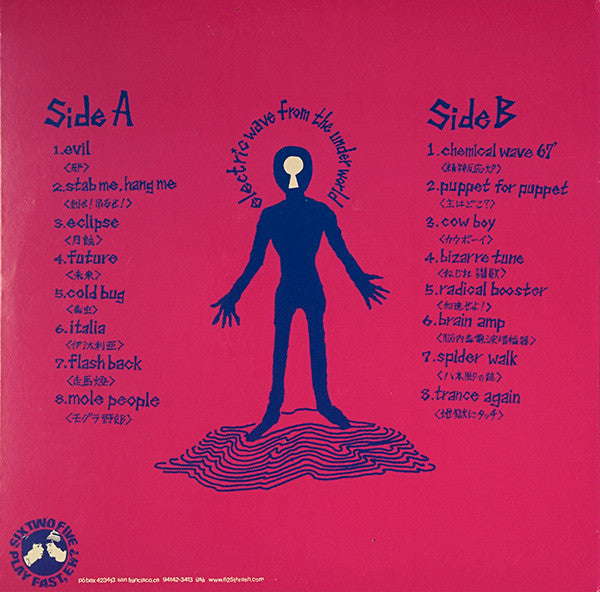 Tracklist: A1. Evil, A2. Stab Me, Hang Me, A3. Eclipse, A4. Future, A5. Cold Bug, A6. Italia, A7. Flash Back, A8. Mole People, B1. Chemical Wave 67', B2. Puppet For Puppet, B3. Cow Boy, B4. Bizarre Tune, B5. Radical Booster, B6. Brain Amp, B7. Spider Walk, B8. Trance Again