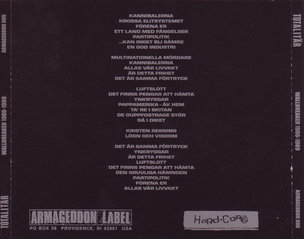 Tracklist: 1. Kannibalerna, 2. Krossa Elitsystemet, 3. Förena Er, 4. Ett Land Med Fängelser, 5. Partipolitik, 6. ...Kan Inget Bli Sämre, 7. En God Industri, 8. Multinationella Mördare, 9. Kannibalerna, 10. Allas Vär Livvakt, 11. Är Detta Frihet, 12. Det Är Samma Förtryck, 13. Luftslott, 14. Det Finns Pengar Att Hämta, 15. Ynkryggar, 16. Pappamerika - Åk Hem, 17. Ta' Re I Skitan, 18. De Ouppfostrade Stör, 19. Gå I Diket, 20. Kristen Resning, 21. Lögn Och Visdom, 22. Det Är Samma Förtryck, 23. Ynkryggar, 24. Är Detta Frihet, 25. Luftslott, 26. Det Finns Pengar Att Hämta, 27. Den Gruvliga Hämnden, 28. Partipolitik, 29. Förena Er, 30. Allas Vär Livvakt