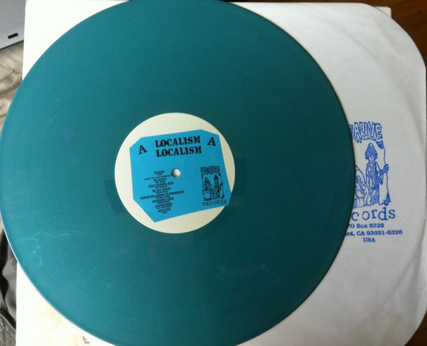 Compilation of 90s Nardcore. With booklet and an envelope addressed to Fred Hammer. Turquoise vinyl. Vinyl looks unplayed. The jacket is kind of a messy DIY job, but there's just some wear around the edges.